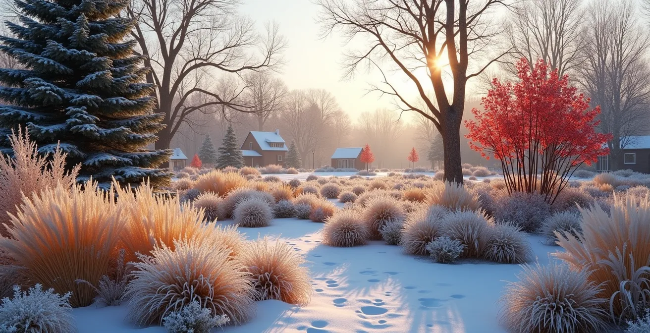 Les vedettes de cet acte hivernal sont multiples. Les arbustes à bois coloré, comme les cornouillers à bois rouge ou jaune, deviennent des traits de pinceau vifs sur la toile blanche. Les conifères nains (pin mugo, épinette ‘Conica’) apportent une structure persistante et une présence verte rassurante. Les arbustes à baies persistantes (viorne, sureau) offrent des touches de couleur qui attirent les oiseaux, ajoutant du mouvement à la scène. Enfin, et surtout, les graminées ornementales et certaines vivaces (sedum, échinacée) dont on a laissé les têtes de graines séchées créent des silhouettes architecturales spectaculaires, capturant le givre et la lumière basse de l’hiver.